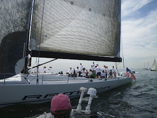 With “Snow Lion” not racing this season, Rich DuMoulin invited me to sail aboard “Laura-Ann” his Express 37. One of the smallest boats I have ever sailed. . A very pleasant boat to sail, with tiller steering. The 2009 Block Island Race re-united me with Rich and Chris Reyling with whom I last sailed aboard “Charisma” during the 1972 trans-atlantic race to Spain.