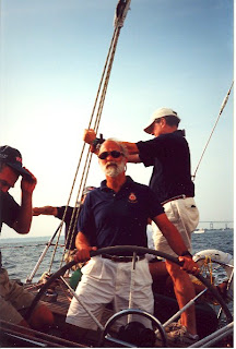 Before the America’s Cup Jubilee Prince Michael of Kent came sailing with us aboard “Columbia” the twelve meter in Newport. I recognized him as soon as he stepped aboard. Not quit sure of how to engage him in conversation, after a bit of reflection I had a thought. Uffa Fox had taught him to sail, and had probably helped him get drunk for the first time, in his teens, along with many other adventures. You had to know Uffa.