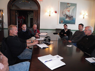 Lunch at the Moorings restaurant, then a meeting at the Seaman’s Church Institute to finalize plans for the upcoming sailing season. In attendance were naval architect David Pedrick, Tony Widmann ,who has strongly supported the class by donating a trophy, Tom Fair, owner of “Madcap”; Toby Rodes owner of “Alana”, Peter Muir, Brion Reiff, Molly Savard, owner of “Cherokee”, Bill Doyle, Jens Lange, Andrew Burton,
