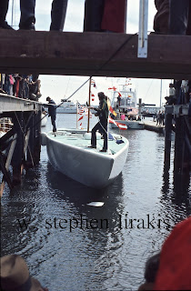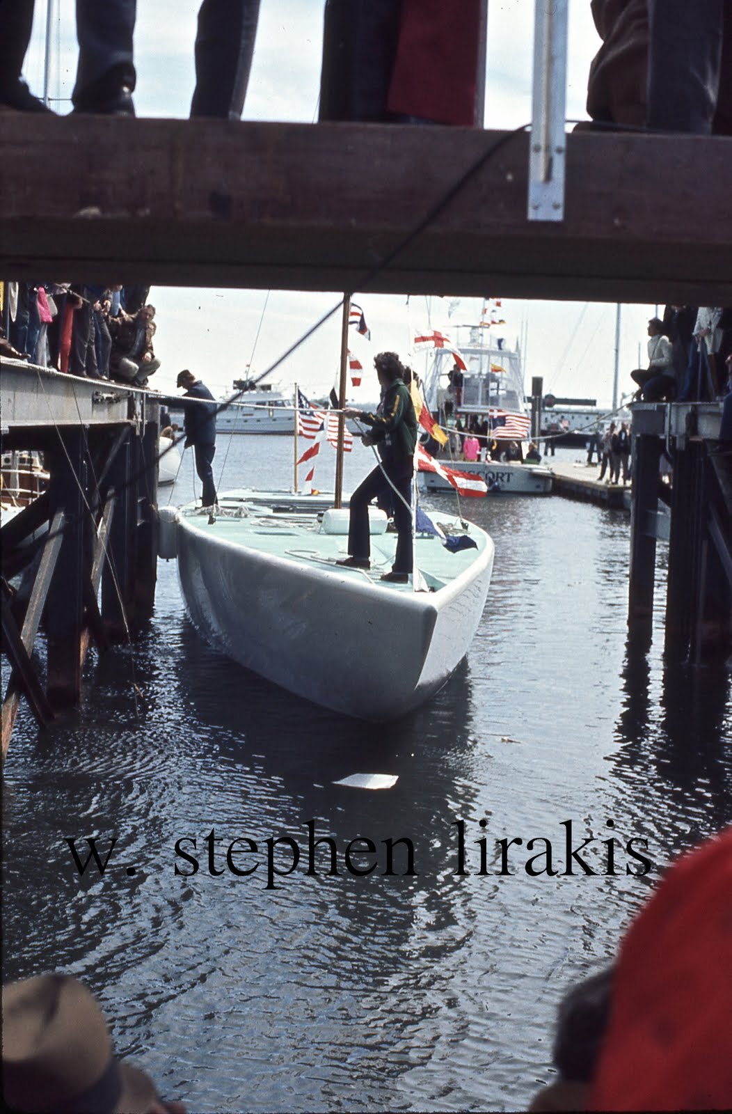 Independence US 28, skippered by Ted Hood. I was the bowman, and responsible for the rig. Conceptually the boat was good but simply not as fast as Courageous. We arrived in Newport with a boat that was just not fast enough. A summer filled with anecdotes of the personalities involved. The last summer of real amateur america’s cup sailing. Turner was unstoppable that year, he won every contest he entered.