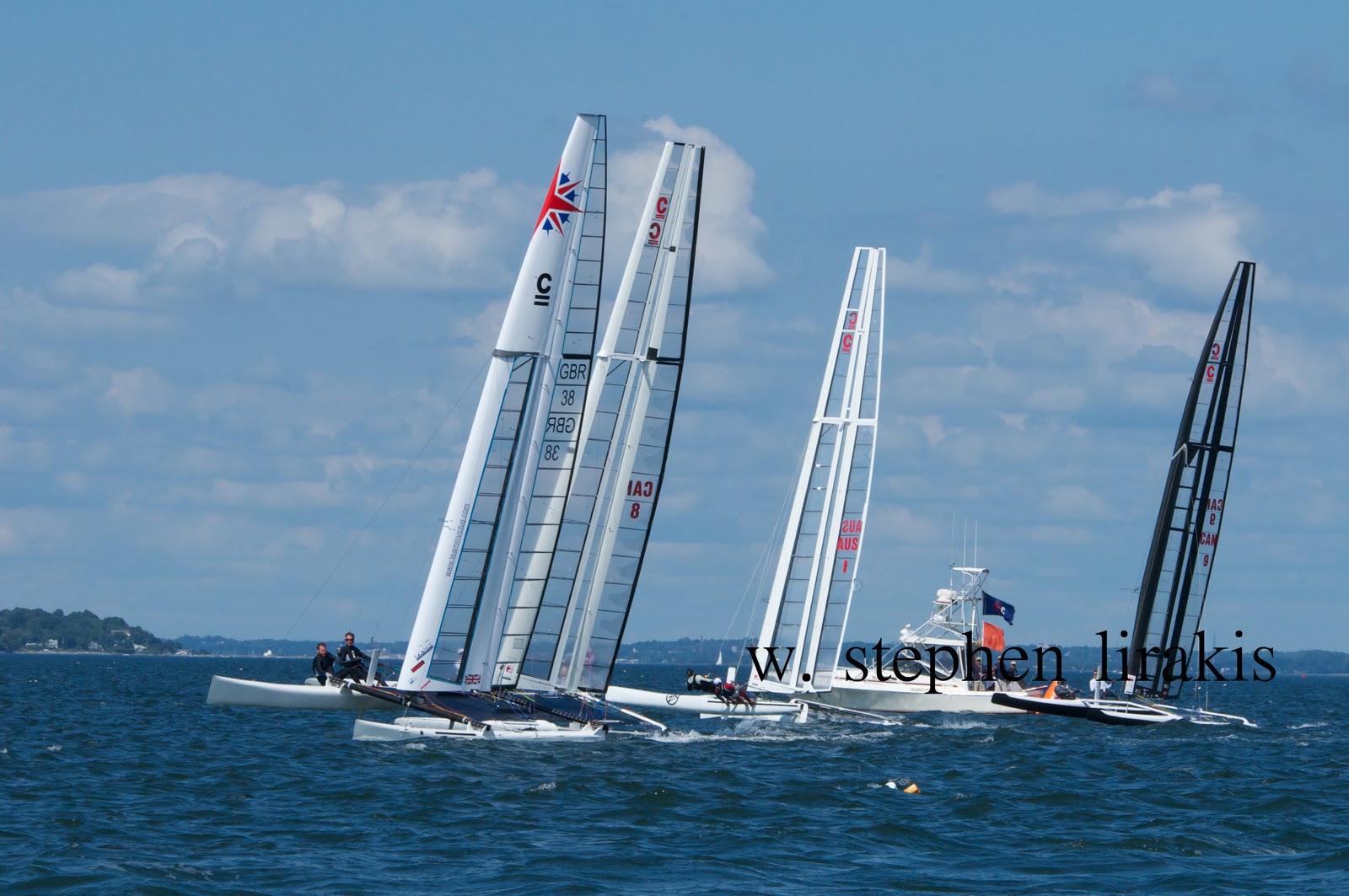 After watching yesterday’s performance by the women match racing it is hard to imagine that if they had been sailing catamarans could have been as close. As intense certainly, but even after having watched the “C” class cats a few weeks earlier, which are small and quite maneuvreable, they accelerate quickly with the wing sails; I am not yet ready to accede to the notion that match racing in catamarans would be as nimble. I will also agree that it is essentially uncharted territory. We have had a very long time to develop strategies in monohulls. We will not turn back the clock. The next America’s Cup will be in catamarans. This is a decision that may well effect the future of sailing as we know it today.