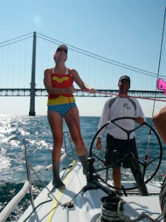 “Wonder Woman” was a much more amusing photo than one of me trimming the spinnaker.